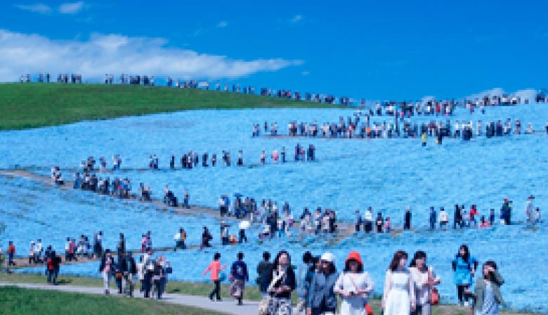特に「みはらしの丘」では1年を通して多くの花を見ることができます。一面が青い絨毯と化す一面に広がる約450万本ものネモフィラは国営ひたち海浜公園の代表的な花の一つ。4月下旬〜5月上旬には毎年多くの観光客が訪れます。