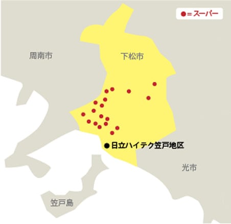 下松市は、自転車圏内に大型スーパーが多く、生鮮食品や日用品などを近隣で揃えることができるため買い物に困ることはありません。