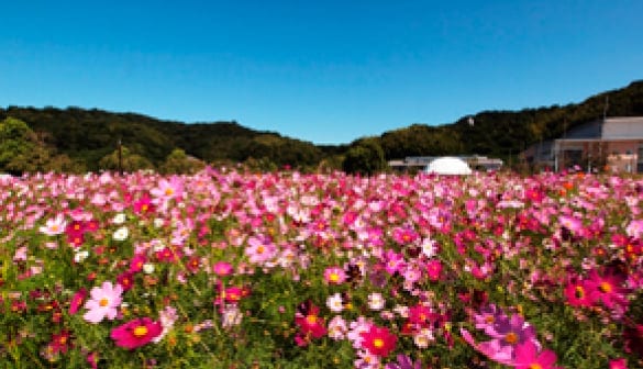 林間の近くに位置し、公園を楽しむだけでなく、大きな滑り台やジャングルジムが子どもたちに大人気のアスレチック「冒険の森」では様々な自然体験を楽しむことができます。菜の花やシダレザクラ、ポピーなど四季折々の花が楽しめる公園としても有名で、特に10月のコスモス祭りでは20万本のコスモスを求めて近隣県以外からも観光客が訪れ賑わいを見せます。園内にはベンチもあるので、ぐるりと散策を楽しむなど、休日のちょっとしたお出かけにぴったりのスポットです。