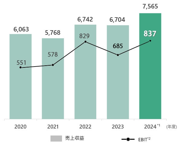 売上収益およびEBITの推移(単位:億円)