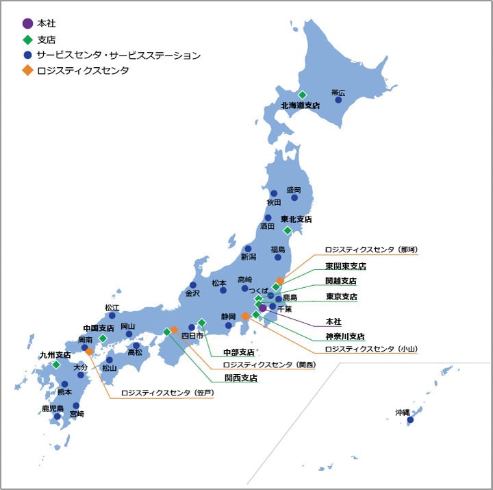 | 東関東支店 | 〒312-0033 茨城県ひたちなか市市毛844番地 FAX: 029-272-3122 |