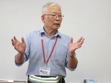 今年は、はじめに光学顕微鏡での観察用にサンプル作りを行い、その後、日立OBの永田文男さんに「昆虫と植物の不思議なしくみ」のお話をしていただきました。