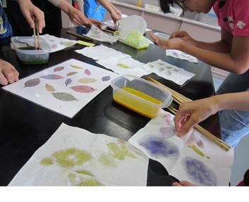 また、今回は初の試みとして、当社OBの篠田彬さんにご協力いただき、「葉脈を使ったしおり作り」も行い、児童たちは授業終了間際まで夢中に取り組んでいました。