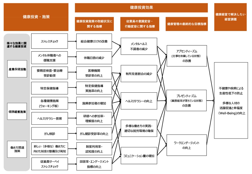 引き続き「不健康や疾病による生産性低下の防止」「多様な人材の活躍促進と幸福度(Well-Being)の向上をめざし健康経営を実践してまいります。