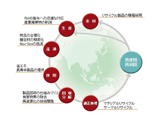 製品のライフサイクルに合わせた環境への取り組みを、グループ全体で実践しています。