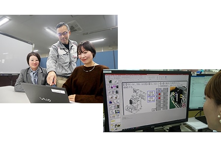 回路CADでは、プリント基板専用CADを用いて、回路入力、アートワークを実施し、組立製造に必要な図面・データを作成しています。また、機械CADでは、3次元CADを用いて、機構系機械図面やハーネス製作図面を作図しています。そのほかに、製品に使用する部品・材料などの調達情報や在庫情報、製造中止情報を管理・提供しています。
