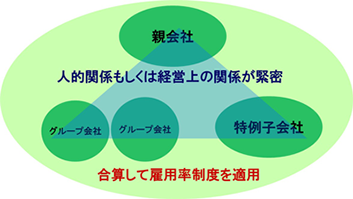 障がい者雇用の推進のために法律で定められた会社です。親会社と資本・業務の上で緊密な関係を持つこと、障がい者の方に特別の配慮があることなど、一定の要件を満たすことで、別法人であっても子会社が親会社と障がい者雇用者数を合算する事のできる制度です。