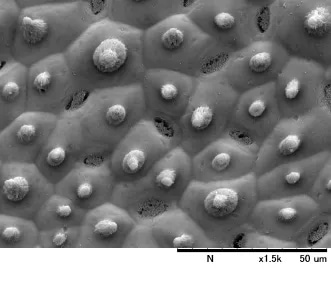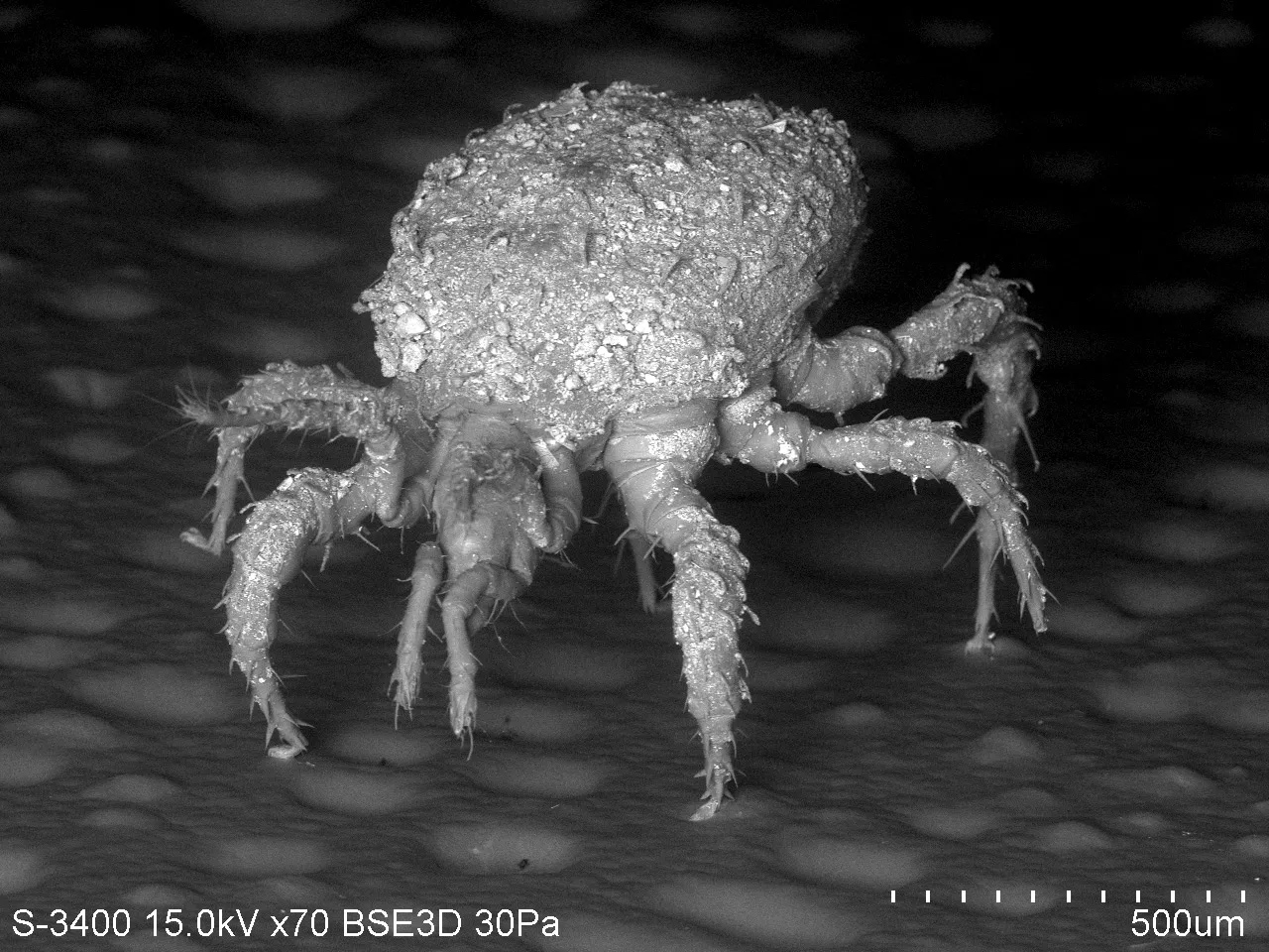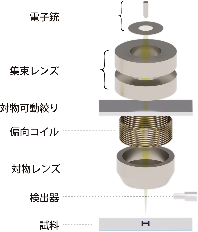 光学顕微鏡ではみられない、とても小さな物体を見る事ができます。試料に電子線を当て、その反射や透過を検出器が判定することで、物体の形を認識しモニターに投影します。