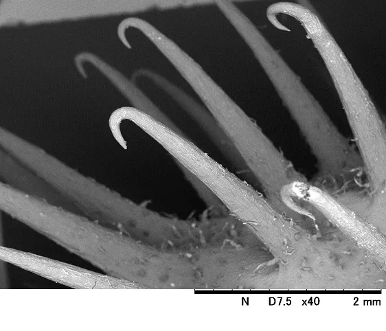 は、フック状の突起によって衣類や動物の毛に付着する、オナモミやゴボウなどの植物の実から着想を得たものであり、