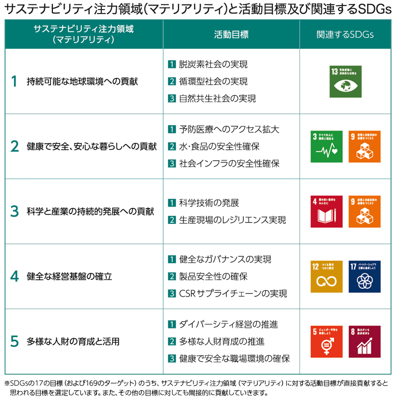 「持続可能な地球環境」「健康で安全、安心な暮らし」「科学と産業の持続的発展」の実現に貢献します。