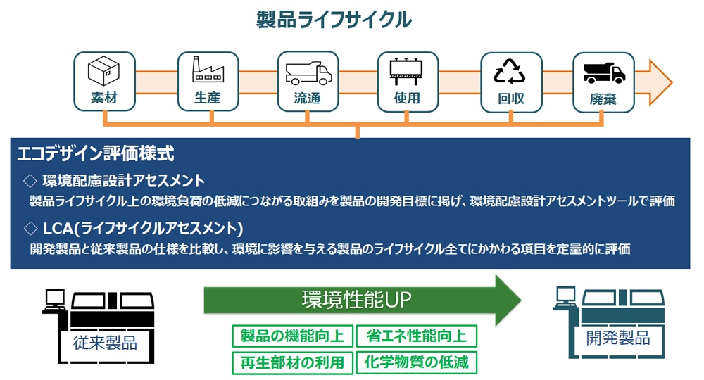 日立ハイテクは、グループをあげて「エコデザイン」を推進しています。これは、製品開発の初期段階から環境への配慮を反映した設計を行い、LCA(ライフサイクルアセスメント)を通じて環境負荷を定量的に評価することを目的としています。