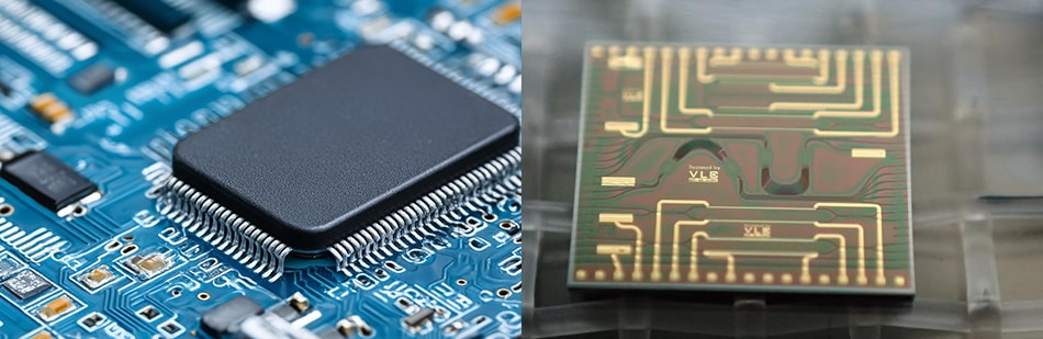 光集積回路(フォトニック集積回路:PIC)とは、光を処理するさまざまな機能を一つのチップ上に集積したものです。チップは大きなもので数センチ角から小さなものでは1ミリを下回り、その上にレーザー、フォトダイオード、変調器といった部品が最大で1万個、マイクロメートルレベル(※)の間隔で配置されています。