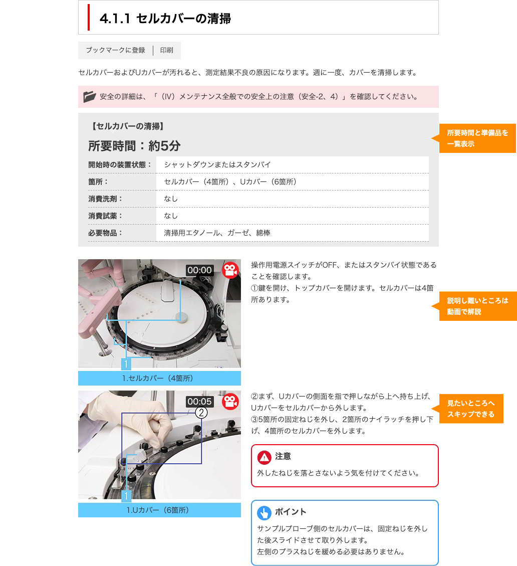 作業の所要時間やポイントの紹介、文字や図表だけでは分かりにくいコツの解説、 間違いやすい注意点や補足情報も充実しています。