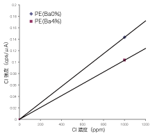 試料中にBaが含まれることにより、Cl KaはBaによる吸収のため、感度が変わります。本オプションでは、Ba濃度も同時に測定することで自動的に補正行います。