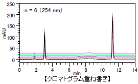 また再現性も、RSD=0.04~0.06%(保持時間)、RSD=0.18~0.27%(面積値)と良好な結果が得られました。