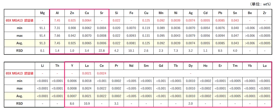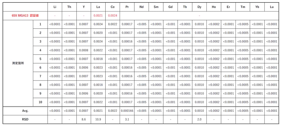 表4. 認証標準物質 (65X MGA13) の測定結果
