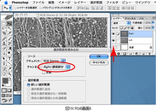 ソースのチャンネルの部分がRight/透明部分(下図19の赤丸で囲んだところ)となっていることを確認しOKをクリックする。
