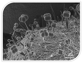 固定や金属コーティングなどの前処理を全くしないで、そのまま低真空SEM(二次電子)で観察してみたら、虫も嫌うという“ニオイの元”(腺毛)が、実はこんなにステキな形をしていました。
