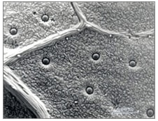 試料作製法:シソの葉を適当の大きさに切り、市販のヤマト糊で試料台にはりつけ、そのまま観察する。
