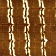 シリコーン処理されたの電子線硬化フィルムをAFMによりスクラッチ加工しました。バネ定数の大きなカンチレバー(K=40N/m)を用い、一定の荷重(~1μN 程度)をかけ、走査の向きをFig.1のように交互に変えながら、最初に横方向のスクラッチ溝を形成し、次に縦方向のスクラッチ溝を形成しました。Fig.2の画像は、最後に同じカンチレバーを使用し、DFMモードに切り替えて形状測定を行った結果 です。