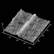 ナノピクスは、自己検知カンチレバーと除振機構内蔵の観察ヘッドにより、操作性を向上した卓上小型のSPMです。走査型プローブ顕微鏡としては類を見ない800×800μmまでの広域観察が可能です。Fig.1は、樹脂射出成形品のひずみを800μmの大領域走査で評価した事例です。このような光を反射しない素材の場合、光学顕微鏡による観察よりも、プローブ顕微鏡のほうが有効です。