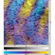 形状像と物性像の重ね合わせ>機能では、形状像と磁気像の混合比を任意に変えることが可能なので、この値を少しづつ変化させた重ね合わせ像で動画(1)を作ることにより、よりリアルに形状と物性の関わり合いを調べることができます。