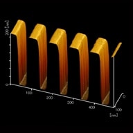 近年、半導体産業を中心とした電子デバイスの微細化、高集積化にともない、 SPMに求められる測定の守備範囲は“面”から“立体”へと要求が高まってきています。半導体デバイスのビアホール、トレンチなどの切り立った微細形状や、ナノインプリント等のハイアスペクト形状については、例えばこれまで収束イオンビーム(FIB)で加工した断面をSEM観察するなど破壊的な検査も行われてきました。SPMは高精度かつ非破壊で、このようなハイアスペクト形状を観察するツールとして使用されています。