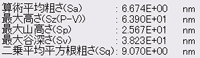 Fig.1は、PZT薄膜表面のDFM形状像(a)、断面プロファイル(b)、JISB0601に準拠した粗さパラメータ(c)です。 表面粗さは6.67nm、最大高さ63.9nmと計測されました。