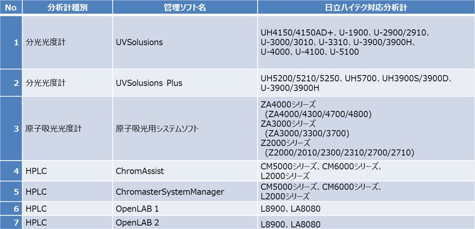 今回、「LabDAMS」では、日立グループの優れた分析計などとのコネクションをより強化。標準接続で対応する分析計を大幅に増強することができました。分光光度計、原子吸光光度計、高速液体クロマトグラフィーにおいて、多くの分析計のフォーマットを前もって把握し、マスターを登録したもので出荷することが可能になったのです。