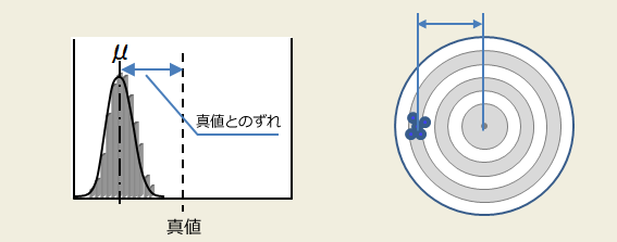 - 平均値μが、「真値」に近いものが、「正確度」(Accuracy)が高い