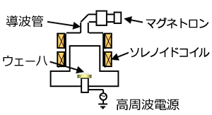 真空容器内で、ガスをプラズマ化し、化学反応と加速したイオンで膜を削って除去するエッチング方法です。