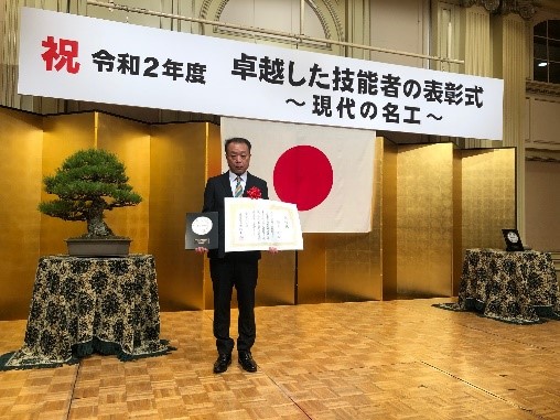 今年度は全国から150名が表彰され、11月9日にリーガロイヤルホテル東京(東京都新宿区)において表彰式が行われました。増子氏の「現代の名工」の受賞は、当社としては2017年度以来9人目となります。