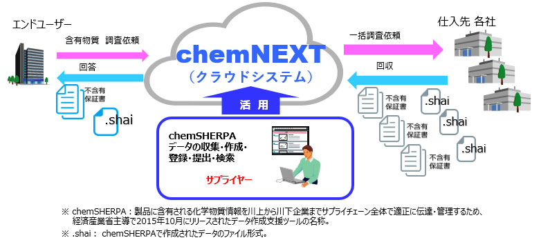 こうした機能やサービス提供体制を通じて、「chemNEXT」は製造業各社の川上から川下までのサプライチェーンにおける含有化学物質情報の伝達を円滑化し、管理の適正化に貢献します。
