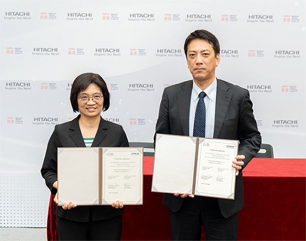 開所式での様子(左:台湾大学 廖婉君副校長、右:日立ハイテク 飯泉謙執行役員)