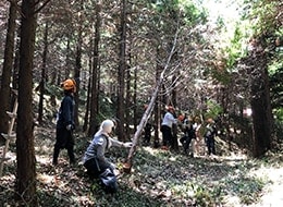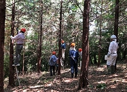 「日立ハイテクやさとの森」育林活動:社員有志が枝打ちと間伐を実施