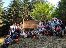 その一環として、日立ハイテクロジーズは、林野庁の「法人の森林」制度を利用し、茨城県石岡市に約2.3haの国有林を借り受け、「日立ハイテクやさとの森」と命名し、2005年から60年間にわたる育林活動に取り組んでいます。森を育てるために行う下草刈りや枝打ち、間伐などの作業には、新入社員や社員有志とその家族が参加しています。今後も、苗木が成長し伐採されるまで継続的に森を育て、地球環境の保護・地球温暖化の防止に寄与していきます。