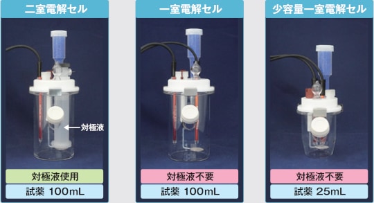 - 対極液と隔膜が不要。省試薬・省廃液・低ランニングコストです。