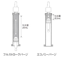 シリンジ上端部での吐出・吸引を繰り返します。 試薬交換作業を自動化でき、さらに廃液を大幅に低減できます。 エコノミーパージの回数は1~99回で設定可能です。