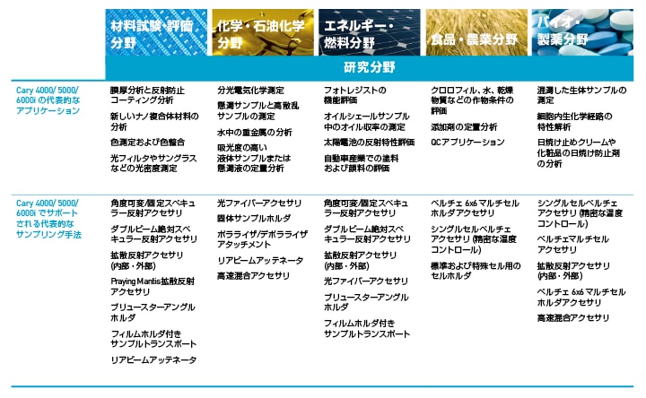 最高品質の最終製品と材料を低コストで一貫して提供する必要がある場合は、革新的で信頼性の高い分析ソリューションが不可欠です。Cary 4000/5000/6000iの豊富なアクセサリを使用することで、幅広く汎用的な測定に対応できます。