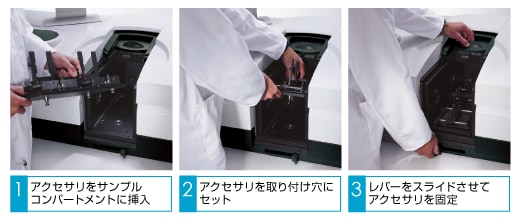 - サンプルコンパートメント内で、正確で再現性の高いサンプル配置が可能です。