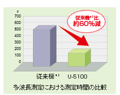 U-5100は、キセノンフラッシュランプによる安定化時間の短縮などにより測定準備時間を大幅に短縮しました*2。