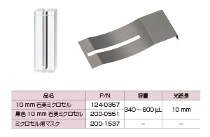 ミクロセルはミクロセル用マスク(200-1537)を組み合わせて使用します。340~600 µL程度の少量サンプル測定に適しています。