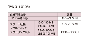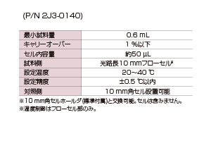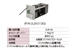 微量セルは微量セル用マスク(3J1-0115)(2個入り)を組み合わせて使用します。1.5~90 µL程度の微量サンプル測定に適しています。
