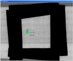 高速に撮像した250×200 mmのX線透過像の全面に対して高速に画像処理を行い、異物ポイントを自動検出します。