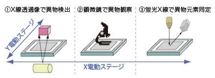 金属異物の検出スピード、元素同定スピードが従来の技術に対して桁違いに早く、かつ、顕微鏡も含めそれらが一つの装置内に組み込まれており、 個々のユニットが連携し全自動で結果が出力されます。これらによりオペレーターは試料のセットだけで測定結果を得ることができ、作業効率が大幅に向上しました。