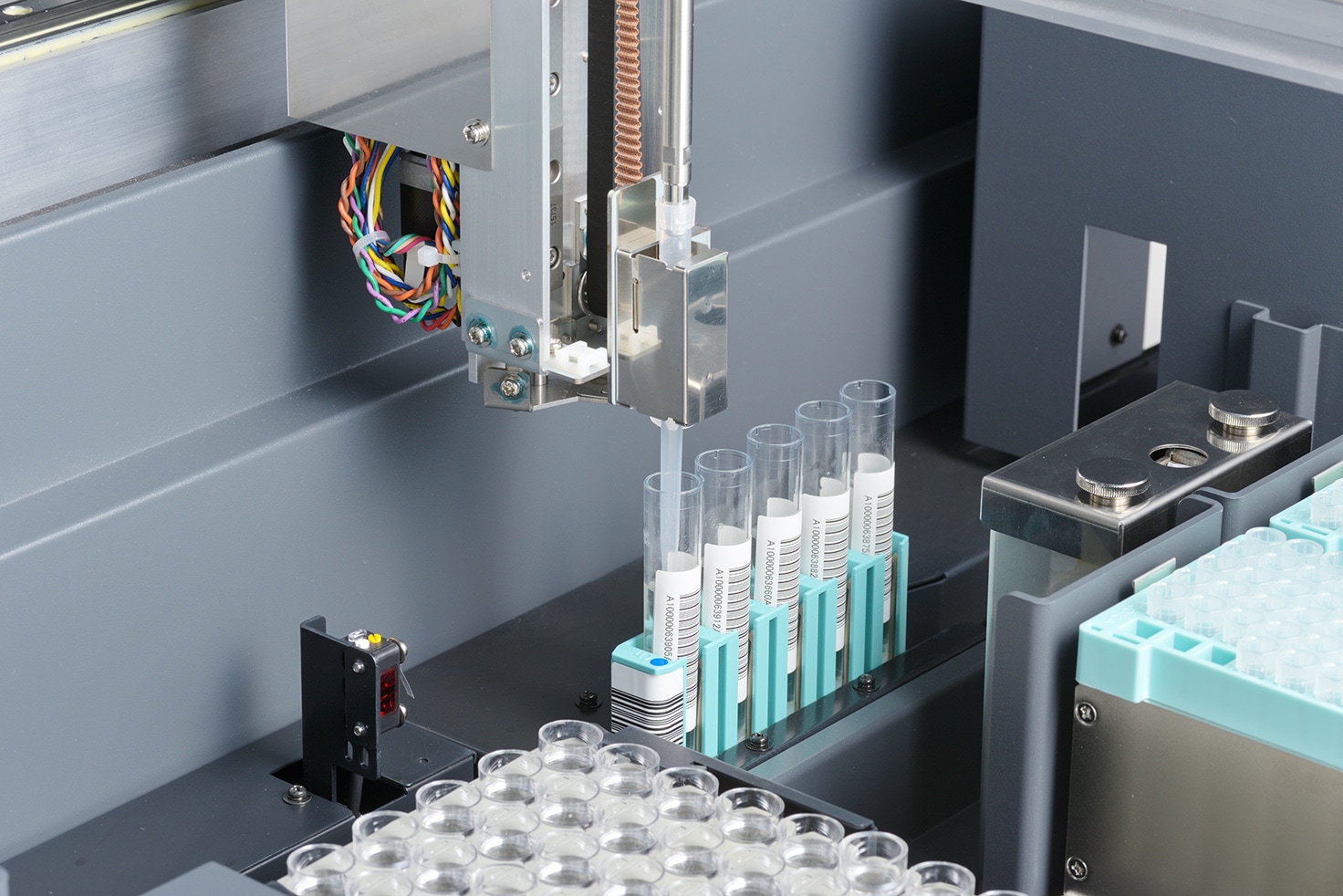 チューブフィーダーの内蔵により、子検体容器供給の自動化を実現しました。市販容器から外部検査委託会社専用容器まで、最大4管種の同時使用に対応し、分注項目ごとに使用容器の選択が可能です。