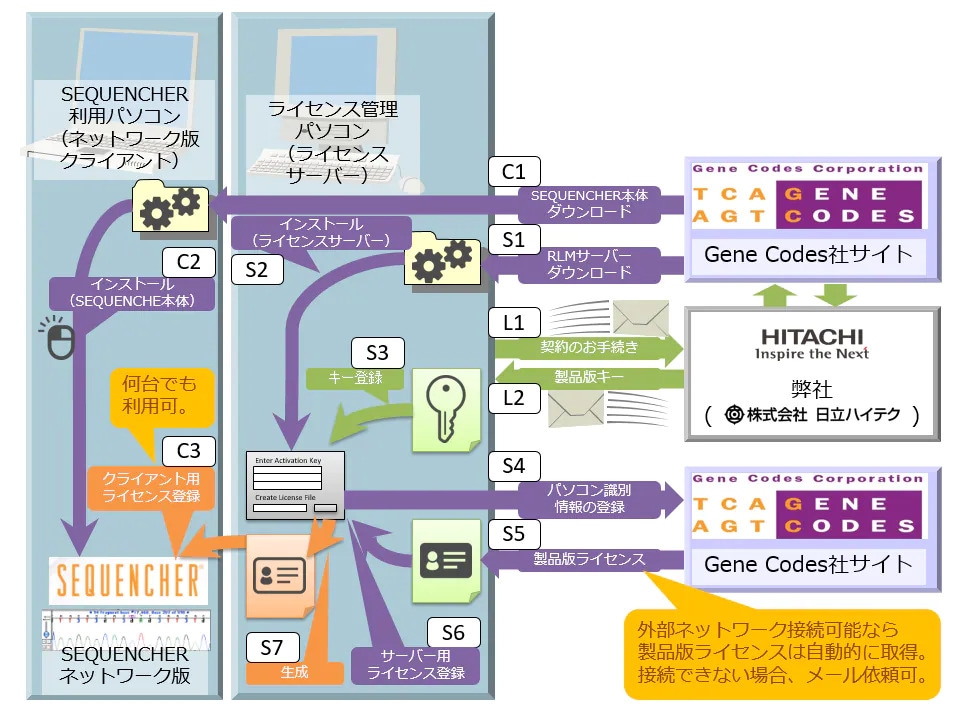 SEQUENCHER用のライセンスサーバーはRLMサーバーと、genecodesサーバーの2つから構成されます。