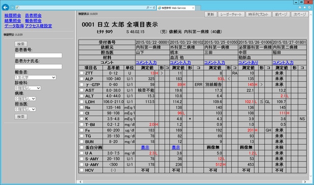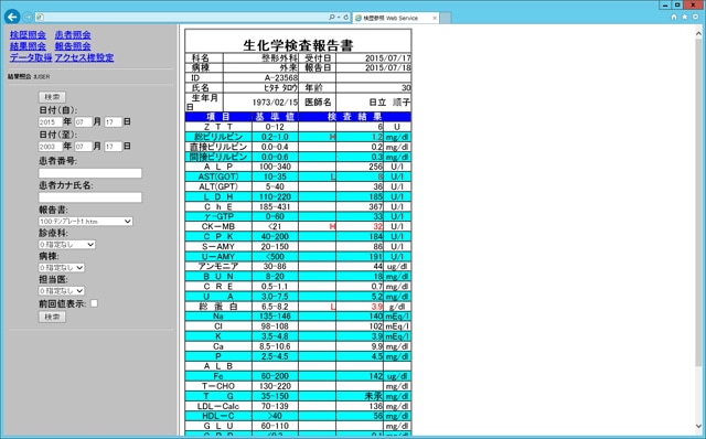 見やすさ・優しさの親切画面で臨床検査結果データをリアルタイムに確認できるWeb対応検査結果参照システムです。