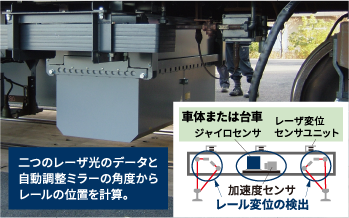 「ねじれ」や「ゆがみ」といったレールの異常を検知し、早期修復と、脱線などの事故防止に貢献。滑らかな軌道を保ち、乗り心地の向上にもつなげます