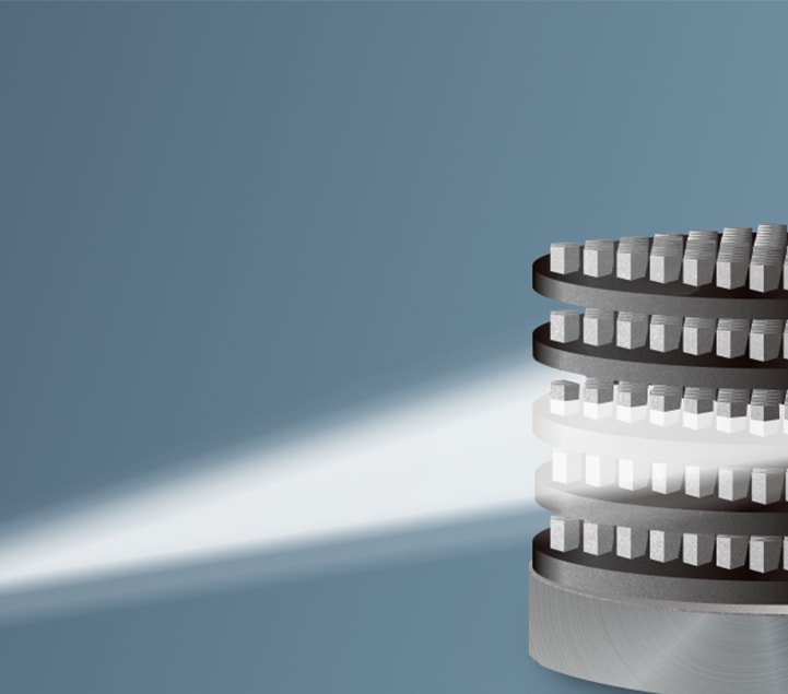 検体を載せたターンテーブルを回転させ、検体を透過したX線を360度方向で検出し、断層像を作成します。断面画像を積層し、3次元画像を生成。さまざまな観察・分析・測定に活用します。